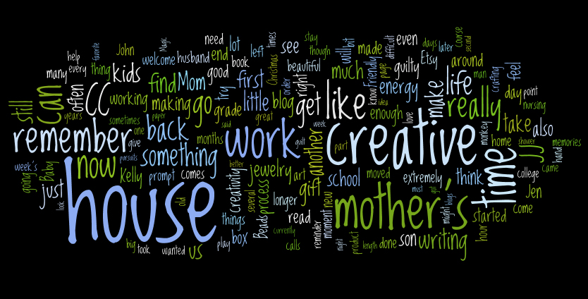 These days, most of my creative energy goes to crafting (mostly beading), but writing is closest to my heart and speaks most to my creative spirit. I’m a published poet. Since I was 19, I’ve kept a journal in one form or another; now, I blog. I’m currently working on several children’s book manuscripts. While I was pregnant with my son, I finished the draft of a novel, an achievement of which I’m proud and a process which I enjoyed, but also an end result that made it pretty clear I’m not meant to be a novelist at this point in this lifetime. Lyricism? Absolutely. Plot? Not so much.
