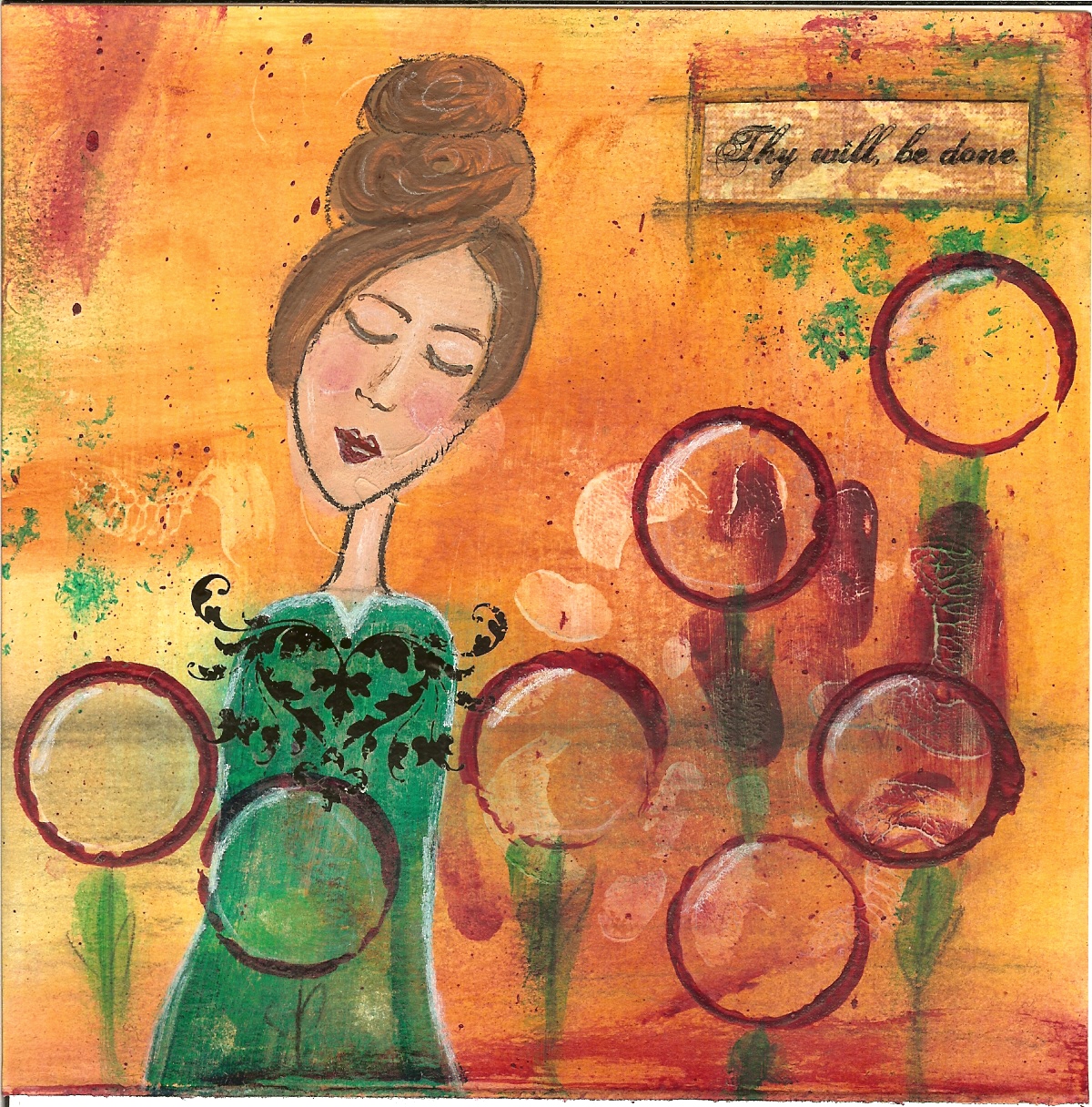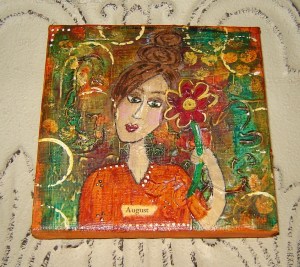 You guys always come through! A bunch of goodies arrived for the creativity contest prompt “circles.” Our winner is newcomer Carmen Torbus, who sent in two gorgeous paintings, both acrylic and mixed media. (The first is entitled “Thy Will Be Done” and the second is “August.” Visit Carmen’s blog here.) I just love the icon-like design quality, don’t you? Congratulations, Carmen — your $10 amazon.com gift certificate will arrive momentarily. Welcome to Creative Construction!