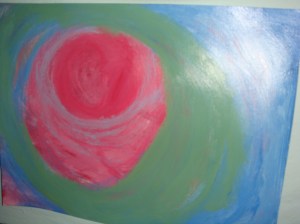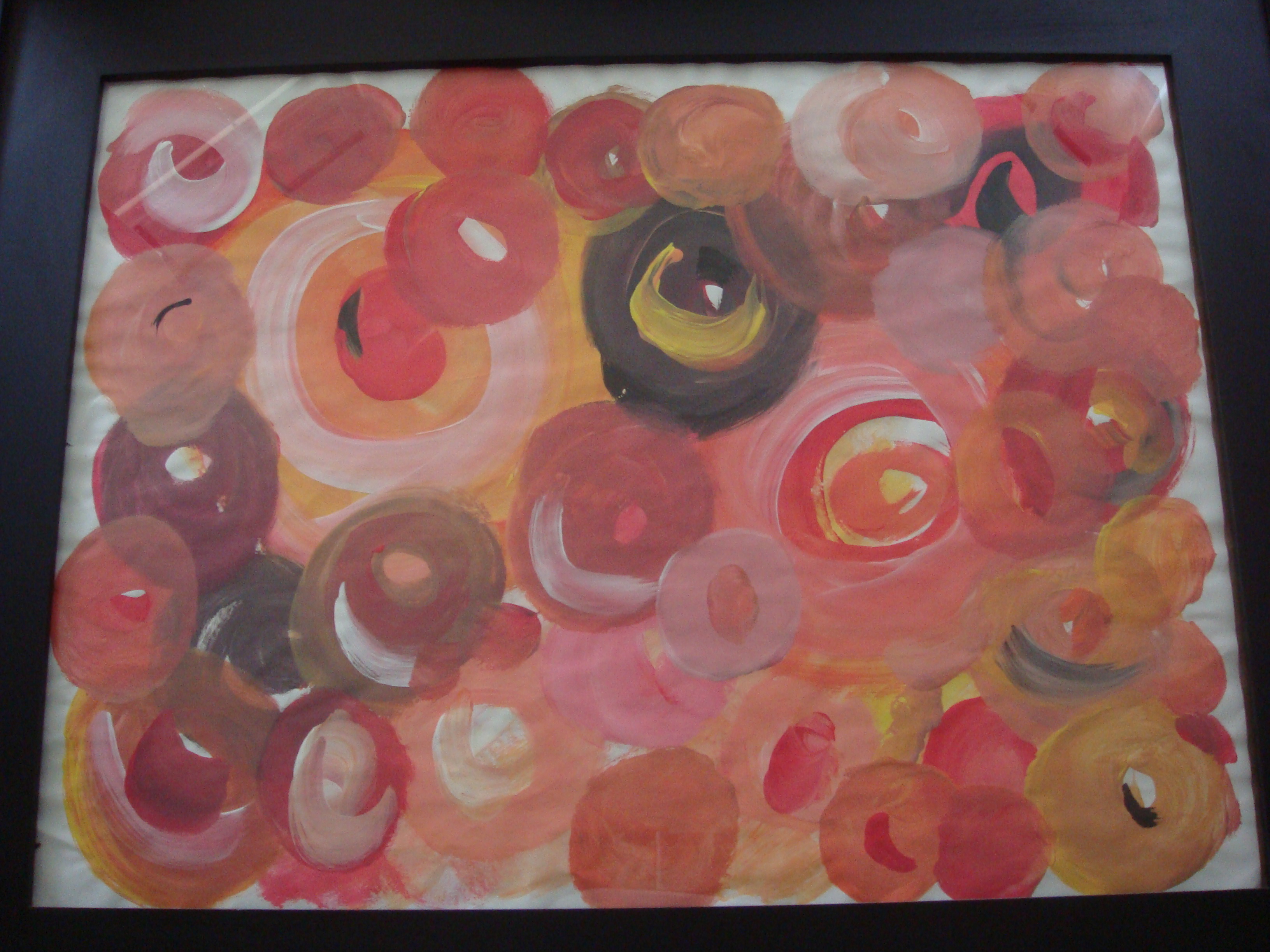 From Lisa Worthington-Brown, last week’s winner, a bounty of circle paintings! Lisa writes: “Painting circles is relaxing for me, so I find that I have a lot of recent work with circles. Here are a few.” (The first image is a detail from a larger-than-life self-portrait.)