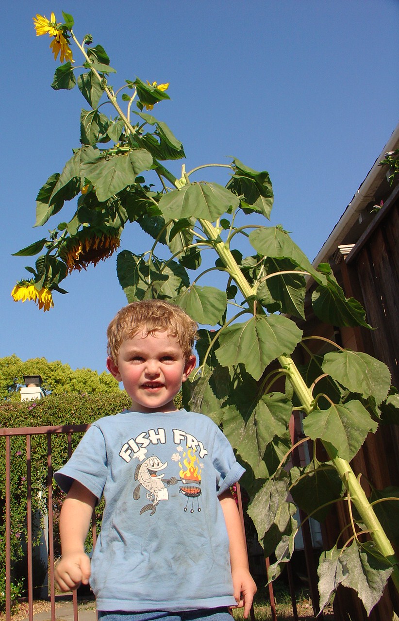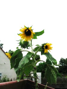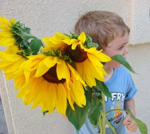 And look at all these entries! I’ve never grown sunflowers so kudos to you Cathy and Jen on those big ole stalks! Love your titles too, Jen; very clever. Gorgeous photo Amy, and your puzzle blows my mind Juliet. How the heck to you do THAT? And Miranda, your haiku is one of the sweetest I’ve ever heard and that photo is lovely. Sometimes Photoshop simply cannot improve on Mother Nature. 😉
