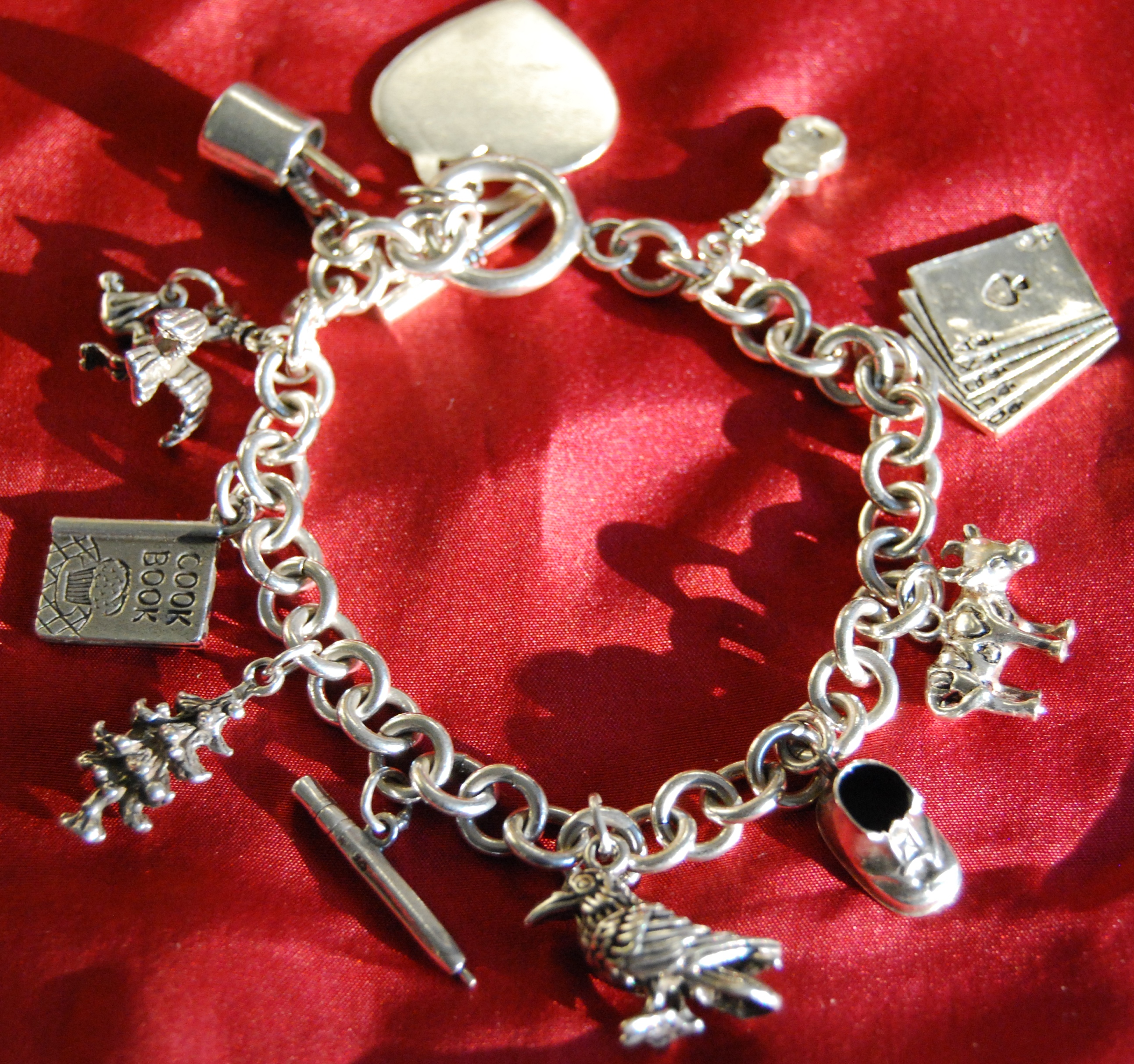 From me (Miranda): I had ideas about what to create for this prompt, but as the time slipped away, I settled for photographing one of my favorite possessions — my silver charm bracelet. Each one of the bracelet’s charms represents something — there’s one for each of my children and my husband, as well as reminders of my creative self: a pen, and a cup of paintbrushes. Wearing this bracelet always lifts my spirits (maybe that’s because it jingles softly when I move?)