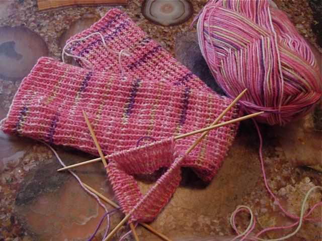 [At left: Here is one of my Christmas projects…leg warmers for all the little dancers in my life.]