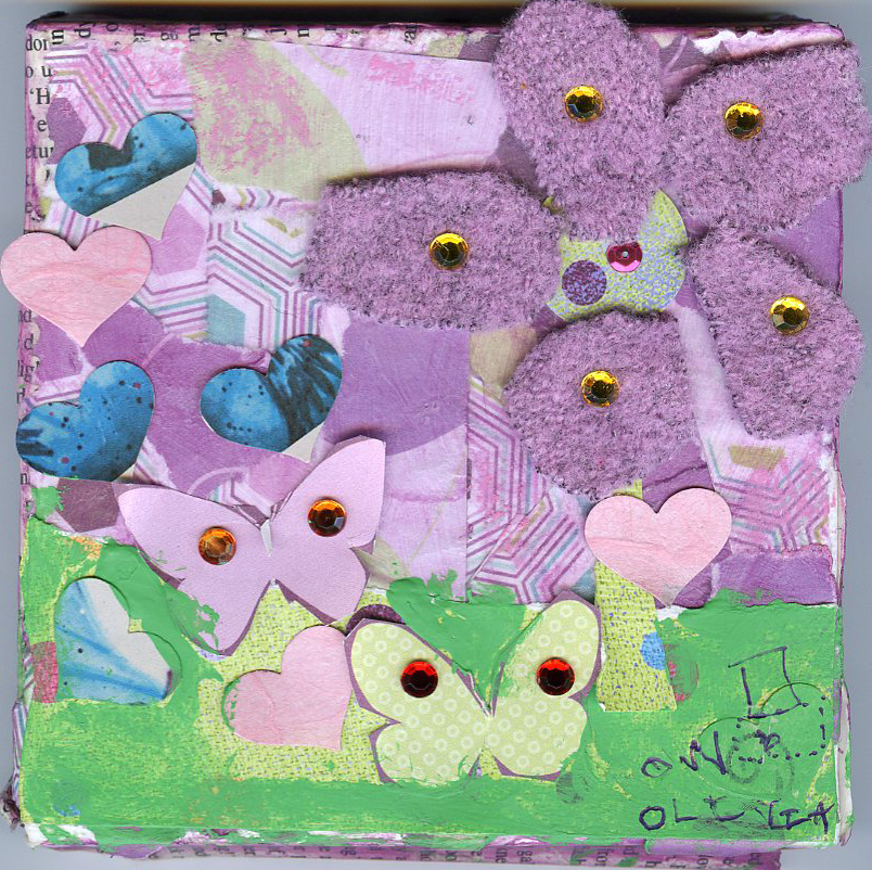 A fun assortment for this week’s creativity contest prompt: “wool.” And not a baa-d entry among them. (Sorry!) Our winner is Kelly Warren, for a creative project she and her daughters sent in. Kelly writes: “I was stumped on this one until I started going through a pile of sweaters I was taking to Goodwill, and then the perfect little mom and daughters art day idea hit me. The girls and I were home for the MLK Jr holiday and created these pieces. The ‘wool’ came from the purple wool sweater I felted and then cut flower petals from. The girls followed my steps as I created my piece, each putting their own little spin on it. They actually added the rhinestones to theirs before I added any on mine! I love the freedom of their pieces! Makes mine look a little boring! We had paper and glue everywhere and had a great art day together. This morning, the girls wanted to take their pieces to school to show their art teacher, Ms. Haddon. When we showed her and I told her about our process, she literally had tears in her eyes. She said it meant so much to her to know that at least some parents were making art at home with their children and asked me to please bring in any other pieces we make together for them to share. Very sweet.” Nice work, Kelly, Livvie, and Sarah! (Shown in that order.) Your $10 amazon.com gift certificate is en route.