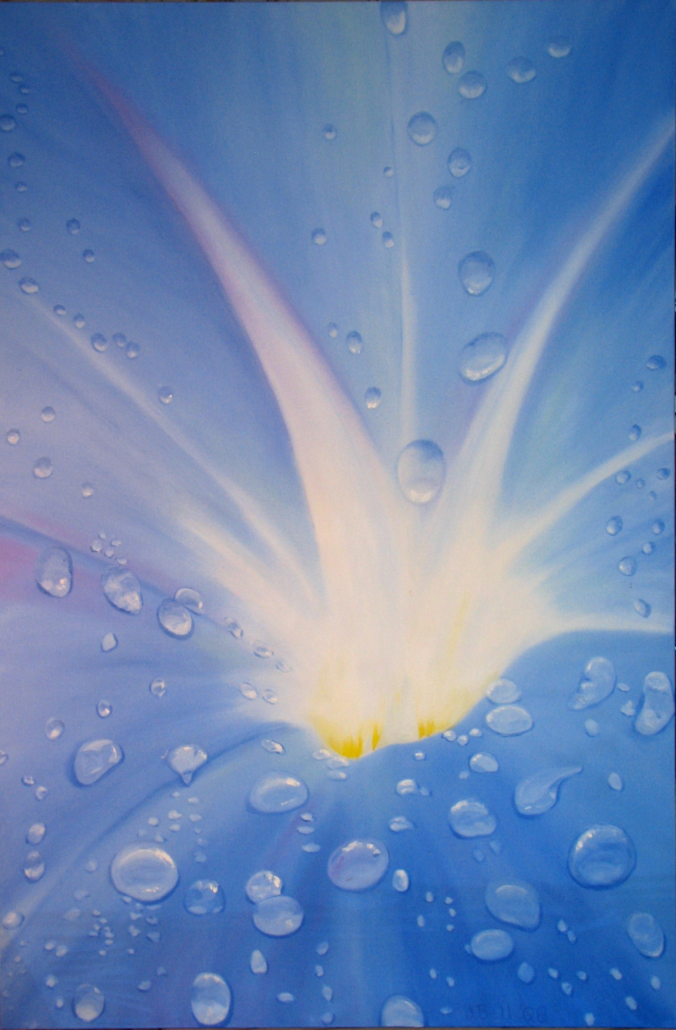 Julie! You did the morning glory painting! I’m so glad! It’s absolutely beautiful; exactly the right blue, and how DID you do those raindrops?