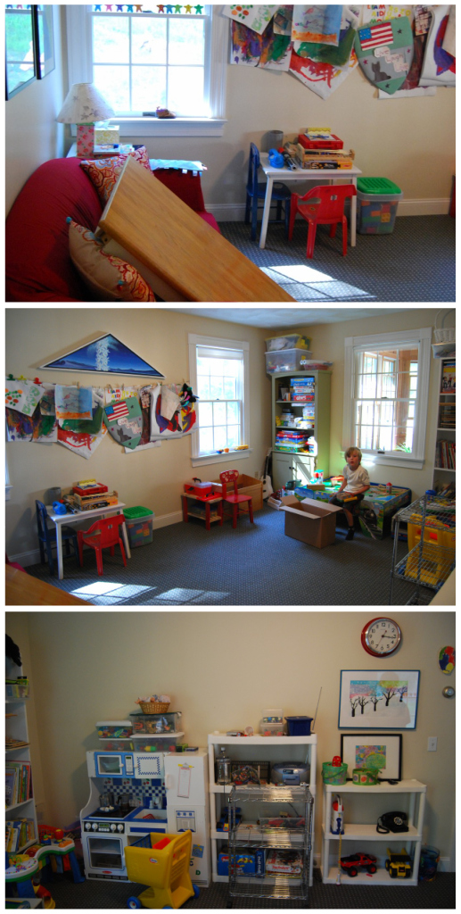 Here’s the old playroom, just as I started taking it apart (note that my camera tends to distort reality — it makes this room look larger than it actually is):