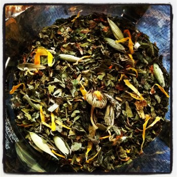 Whether it was Jane’s Elderberry Rosehip Syrup, her Echinacea Tincture, or her artisan herbal teas, I don’t know — but I do know that I didn’t get the Stomach Bug. I did get a milder version of the sinus congestion that my family is sharing right now, but when I take a few doses of Jane’s medicine along with a big mug of her Nourish Tea (made in the French press, which works so well with loose tea), I feel like a million bucks. Seriously, this is the best herbal tea I have ever tasted, and — as you can see above — it’s a feast for the eyes. With her own creativity, Jane is not only keeping me healthier, but she’s helping me to be more creative by maintaining my bandwidth!