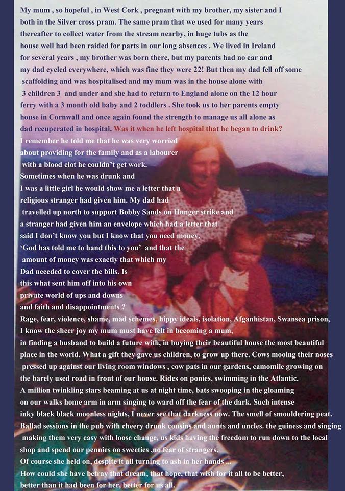 I keep in contact with all collaborators through Facebook on my phone. Ironically, in the media there is often discussion about how mums spend too much time looking at their phones. But thanks to my little phone I’ve managed to give a crucial part of myself an outlet that fits around my motherly duties. I’ve also managed to sell a few prints that came out of the project, which you can see on my Etsy page.